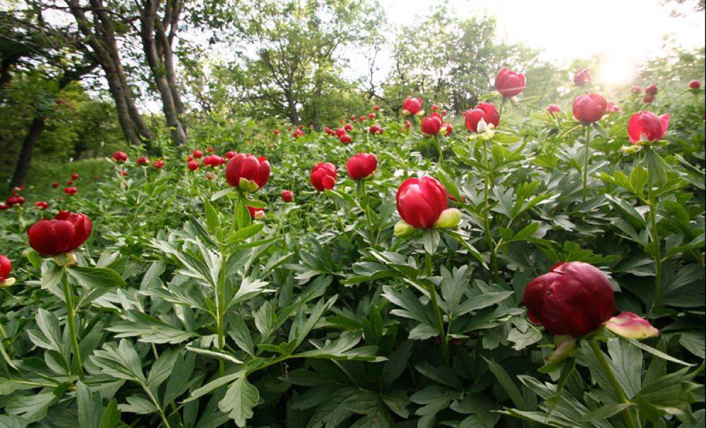 Pădurea adăpostește o varietate de bujor sălbatic, denumit Paeonia Peregrina.