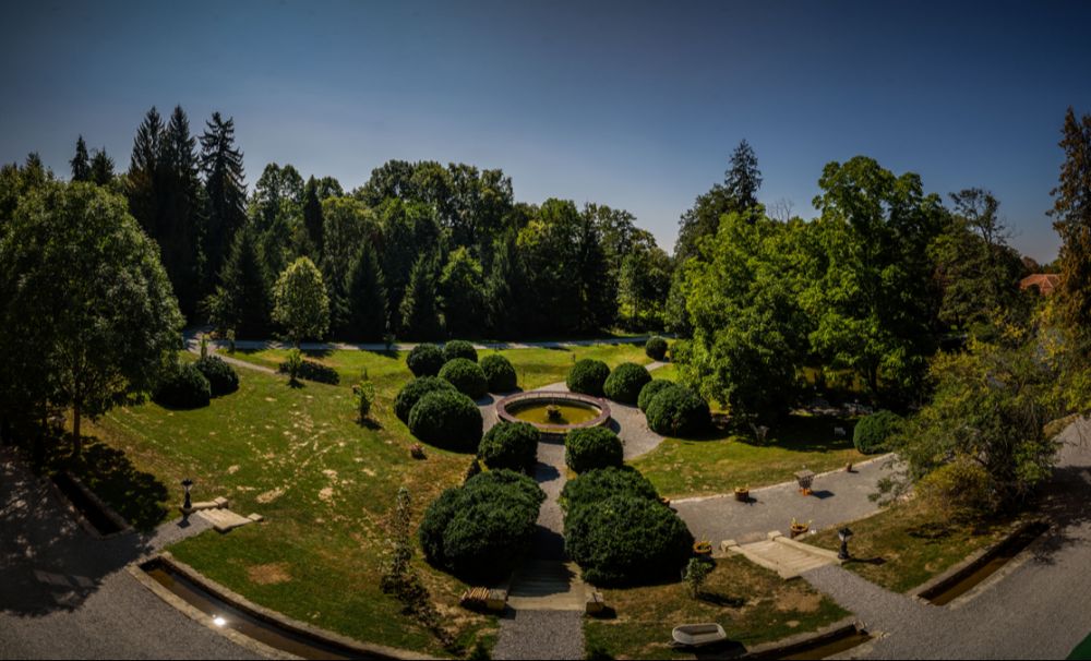 Am trecut de porțile grele și ruginite de la intrare, după ce ne-am anunțat venirea și, bineînțeles, mașina a fost observată prin camerele de vederi de la poartă. Ca prin minune sau magie, aleea de castani ce te însoțește cu crengile atârnânde ce nu îndrăznesc să mângâie omul sau mașina, te conduce către un vast și generos domeniu. Acest domeniu, în întregime, este la dispoziția vizitatorilor.