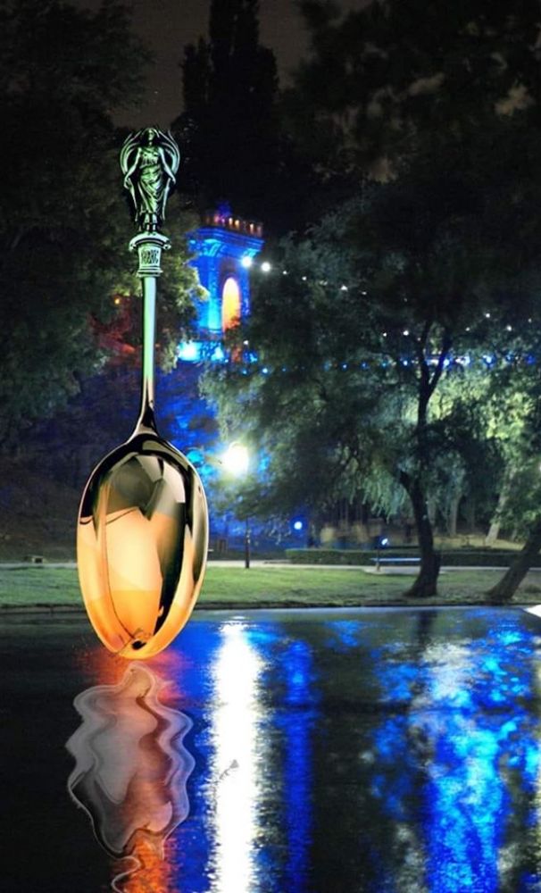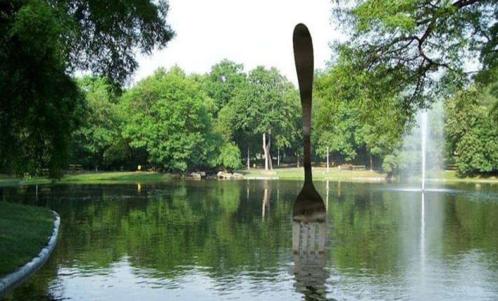 Sculptură "Furculițaaa" oțel oxidabil de proastă calitate în bon ton cu exploatarea parcului Nicolae P. Romanescu Craiova