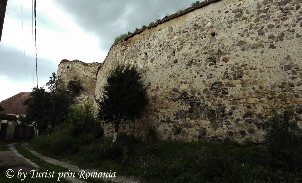 Incinta fortificației prezintă un zid de apărare construit și extins în secolul al XV-lea și al XVII-lea. Zidul are formă octogonală și are cinci turnuri de apărare și un turn poartă de intrare ce avea 2 poduri ridicătoare. Pe ziduri se mai pot vedea urmele drumului de strajă care a fost construit din lemn și sprijinit în console. O caracteristică a modului de construcție a zidului este prezența la temelie a unor blocuri enorme de piatră, special aduse, pentru ca inamicului sa-i fie imposibilă practicarea unui șant pe sub fortificație.