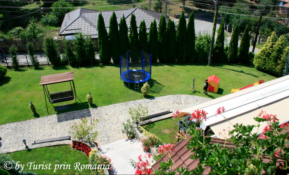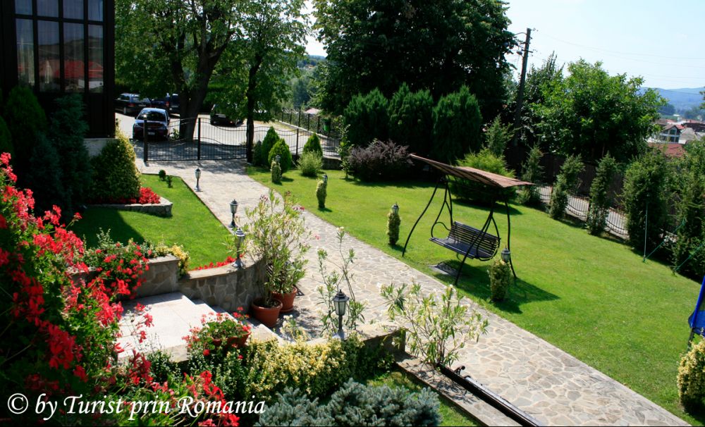 De la intrare ești impresionat de ținuta elegantă a Pensiunii Casa Domnească, silueta impunătoare fiind susținută și completată de imaginea vie a curții verzi și a grădinii înflorite. Un ochi de specialist ar vedea amprenta unui maestru grădinar, care a dispus elementele vii: pomii, florile din ghivece, mușcatele atârnătoare, arbuștii ornamentali într-o perfectă armonie cu celelalte elemente: aleile pietruite, balansoarele, băncuțele și, nu în ultimul rând, toboganul, căsuța pentru pitici și trambulina, adică locul pentru zbenguiala celor mici.