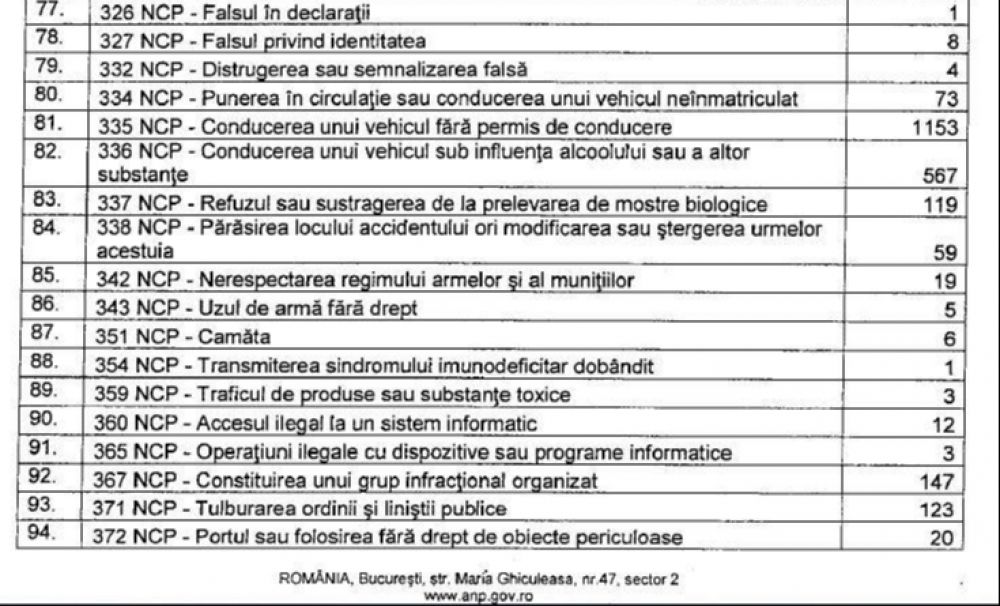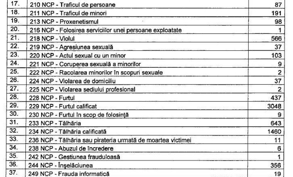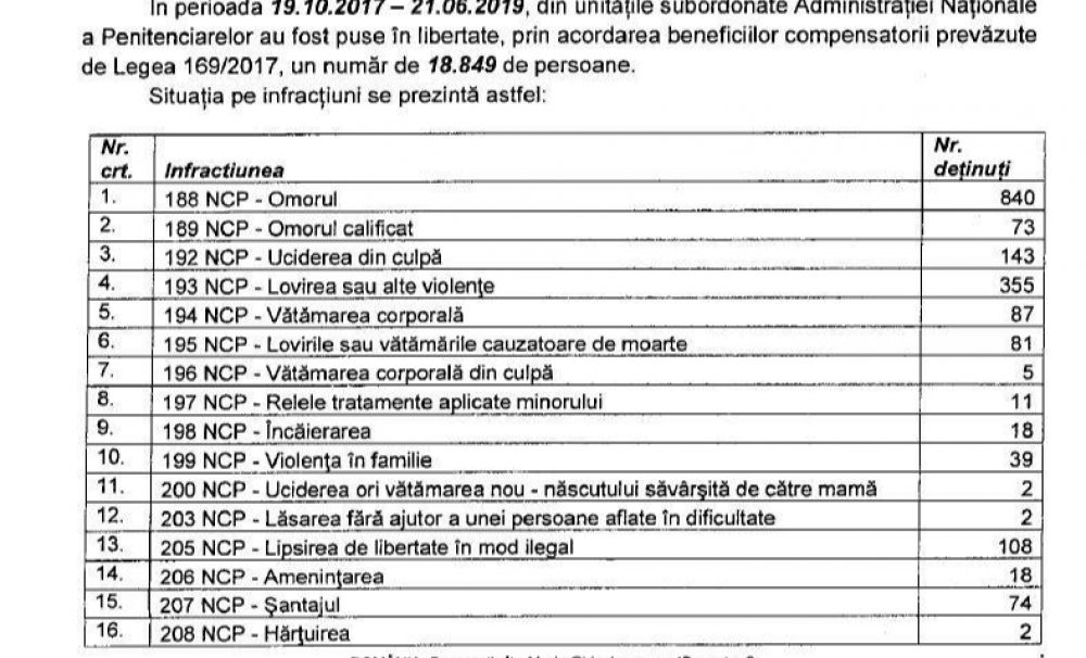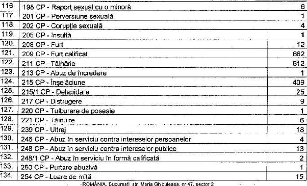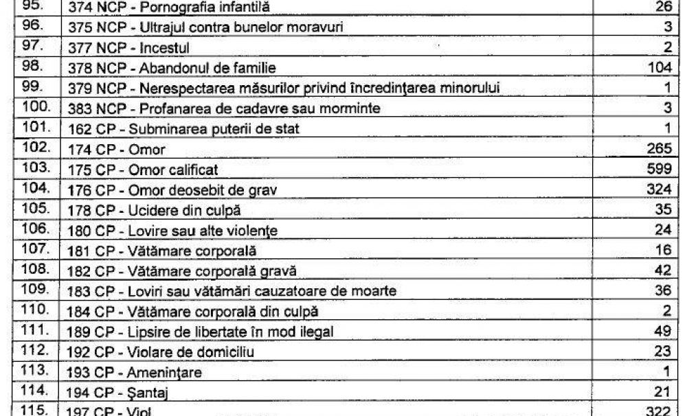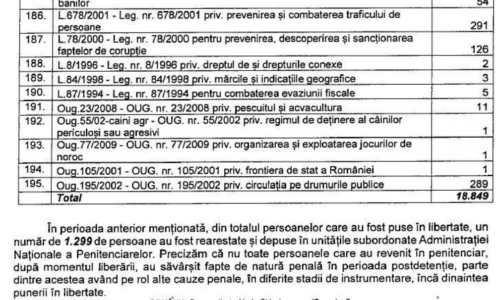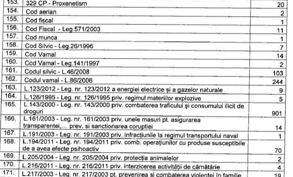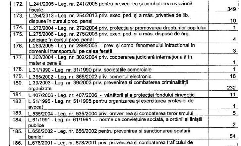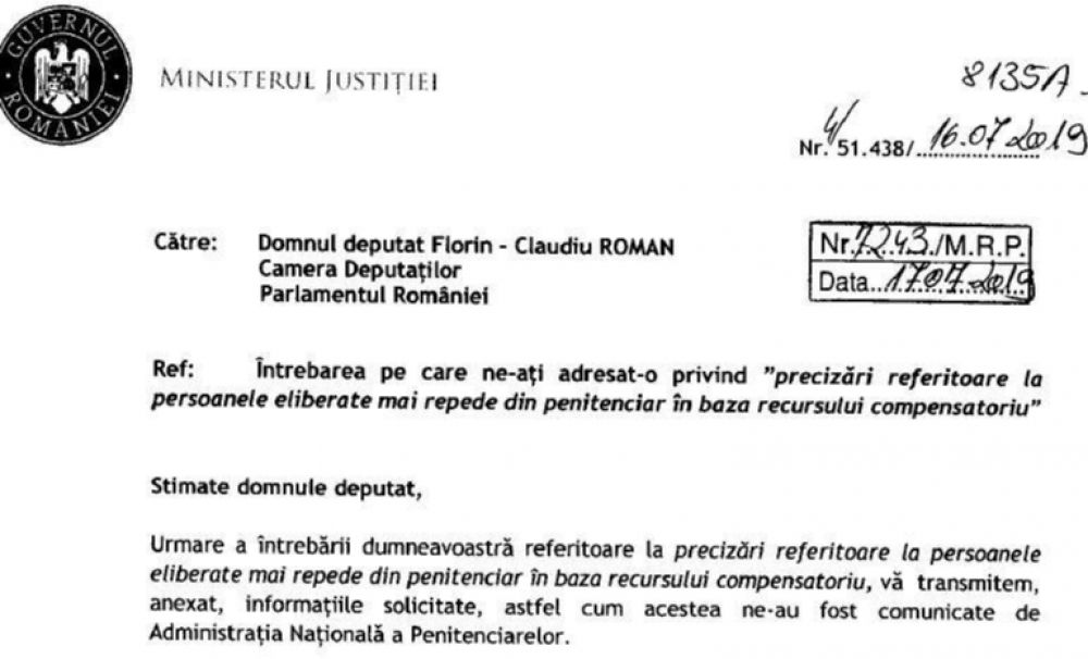 Statistica a fost transmisă la solicitarea deputatului PNL Florin Roman și transmisă către Parlament sub semnătura ministrului Justiției, Ana Birchall, prin intermediul Ministerului pentru Relația cu Parlamentul.