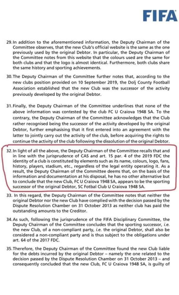 FIFA a emis o decizie care, practic, recunoaște FC U Craiova 1948, echipa lui Adrian Mititelu, drept continuatoarea Universității Craiova.