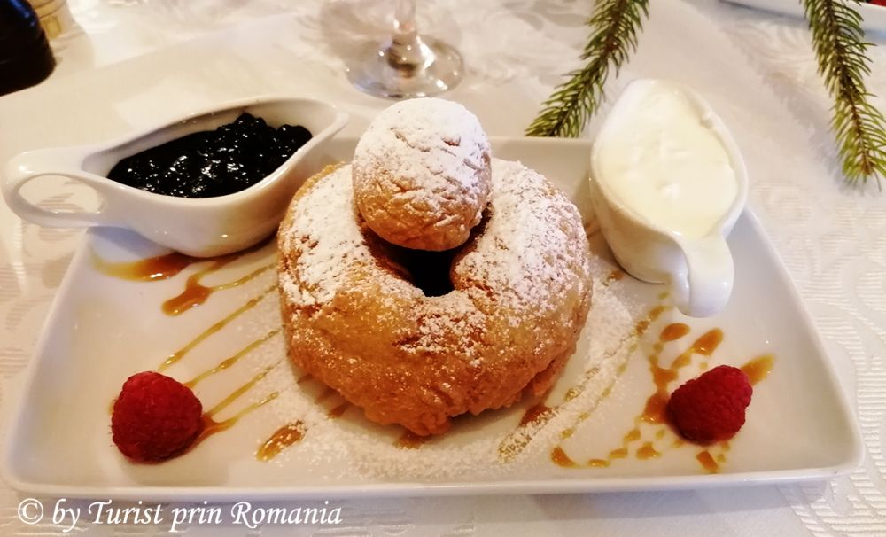 Bucătăria restaurantului este tradițională, la mare căutare și foarte apreciate fiind tocanul de oaie, păstrăvul cu legume sau cu mămăligă sau berbecuțul la proțap. Eu m-am ospătat la masa de prânz cu un păstrăv cu legume din care puteau servi cu lejeritate două persoane. Atât la păstrăv cât și la legume s-a simțit clar gustul de proaspăt, dar și măiestria și pasiunea bucătarului. La desert am optat pentru papanași cu smântână și dulceață de afine, un deliciu pe care l-aș servi la orice oră.