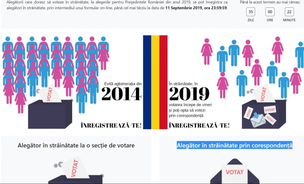 ATENȚIE !!! Prin completarea acestui chestionar, cetățeanul român își exprimă dorința să voteze prin corespondență la alegerile pentru Președintele României din 10 și 24 noiembrie 2019, urmând să fie RADIAT pentru acest scrutin din lista electorală permanentă din România și înscris în lista electorală permanentă pentru votul prin corespondență.