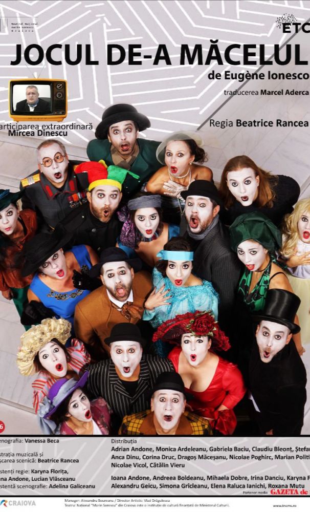 Cea de-a doua premieră a stagiunii 2021/2022 a Teatrului Național „Marin Sorescu” din Craiova este spectacolul Jocul de-a măcelul de Eugène Ionesco. Regia, ilustrația muzicală și mișcarea scenică sunt semnate de Beatrice Rancea, scenografia Vanessa Beca. Primele reprezentații vor avea loc pe 29, 31 octombrie și 6 noiembrie 2021, de la ora 18:00, în Sala Amza Pellea a teatrului.