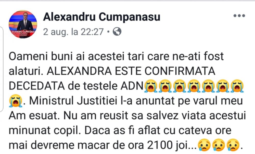 În final, pot spune că o poză venită din partea unchiului îndurerat, în care să apară alături de Alexandra când era în viață, mie, unuia, mi-ar mai alina sufletul.
