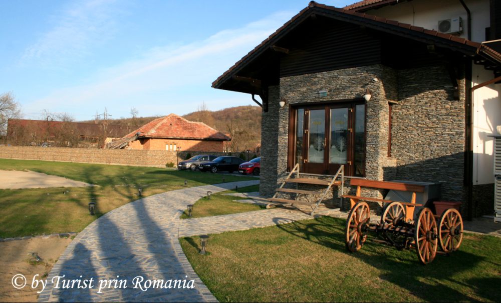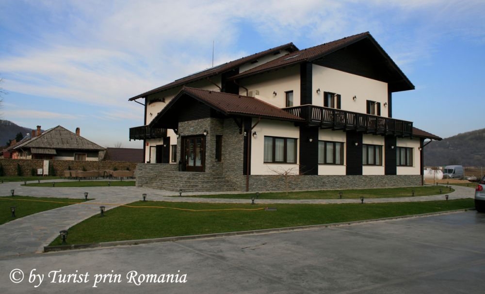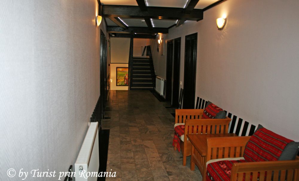 O armonioasă îmbinare între modern și tradițional. Recepția este construită în același stil, un birou stil bar din lemn masiv, decorațiuni florale peste tot, pe pereți tablouri mici cu obiectivele turistice din apropiere, iar in partea stângă, după birou, chiar înainte de treptele de acces spre etajul superior, unde sunt camerele, câteva costume tradiționale, semn al prețuirii culturii și tradiției gorjene.