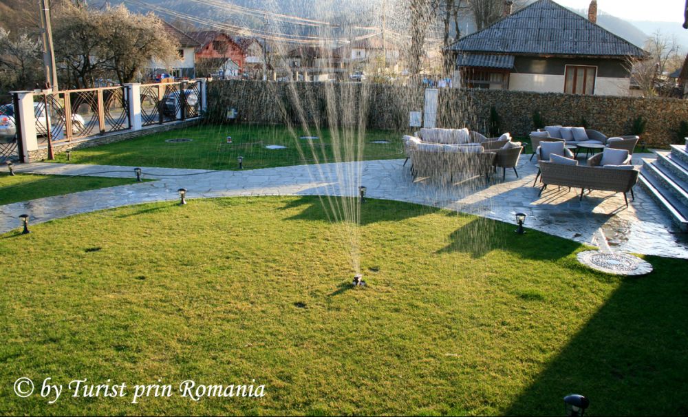 Prima impresie, când am parcat în curtea pensiunii, a fost de tărâm de poveste. Aleile din fața Pensiunii Câmpia Soarelui, verdele impecabil al gazonului, aspersoarele care-și aruncau stropii de apă cristalină peste apusul soarelui. Un amalgam de vizual și olfactiv care te lasă fără cuvinte.