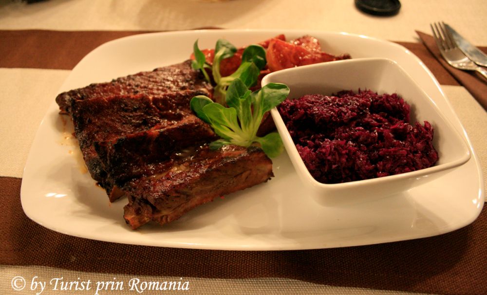 Din vorbă-n vorbă s-a făcut și ora cinei așa că m-am desfătat cu o minunăție de coaste de porc cu salată de sfeclă. Felicitări bucătarului pentru asemenea îmbinare de miros, gust și vizual. Oboseala și-a spus cuvântul așa că m-am retras în căldura plăcută și atmosfera îmbietoare a camerei “Tradițional”.