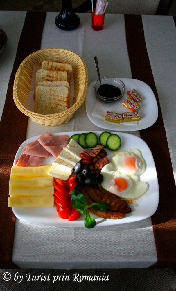 Fiind o persoană foarte matinală m-am trezit mai devreme decât găinile așa că am avut parte de un răsărit absolut extraordinar în compania acelorași stropi jucăuși de apă care se revărsau peste gazon, de data aceasta în compania primelor raze ale soarelui de martie. După ce am luat o gură de aer proaspăt, m-am retras liniștit în cameră așteptând o oră potrivită pentru a servi micul dejun. Nu am avut mult de așteptat, telefonul din cameră sună și, … o voce foarte calmă și amabilă mă invită în salonul pentru servit masa pentru a lua micul dejun. Iată deci, despre ce vorbeam mai devreme. Ospitalitatea și bunul simț, atributele principale pentru domeniul turismului. Am coborât la micul dejun.