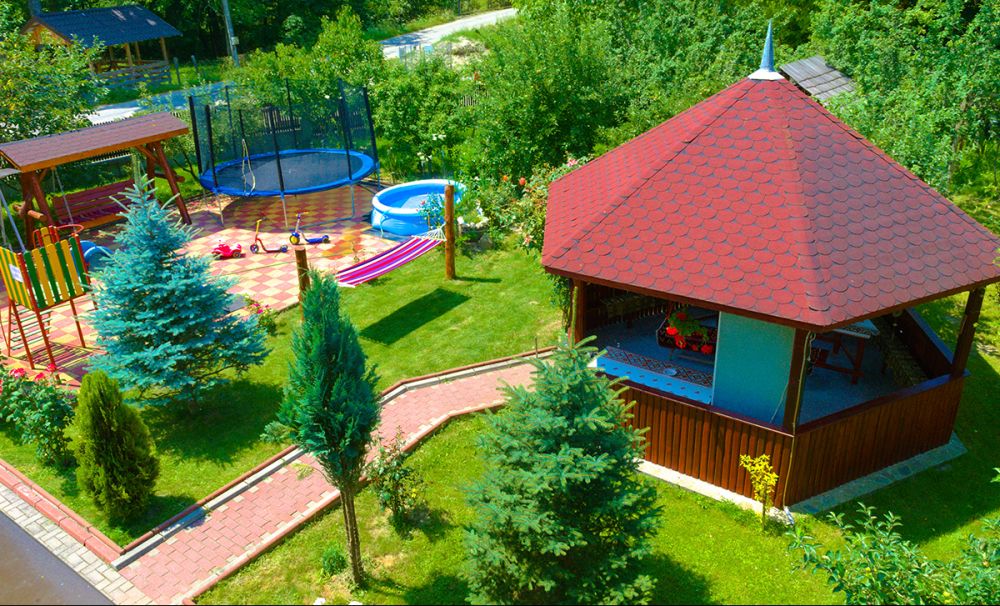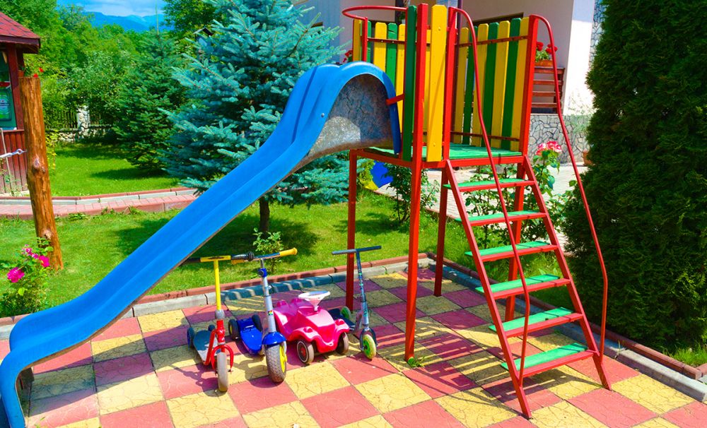 De cum intri în curtea pensiunii îți dai seama că este locul potrivit pentru familiile cu copii. Un loc de joacă utilat cu toate cele necesare, tobogan, căsuță, trambulină, nisip, și balansoarele din lemn ori foișorul cu grătar aflat în imediata vecinătate dau posibilitatea celor care vin cu copii să fie permanent în preajma acestora și să-i aibe în grijă fără a depune vreun efort special.