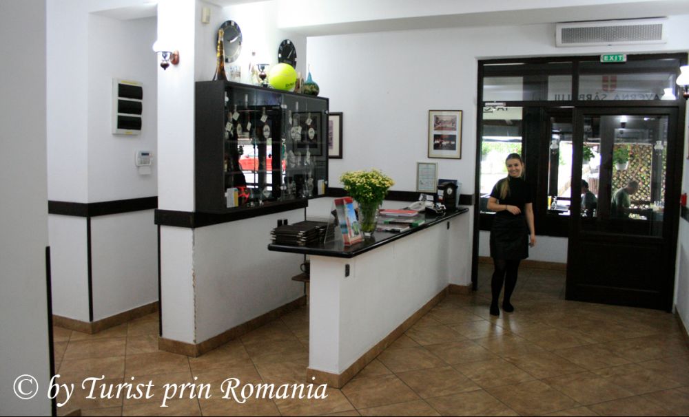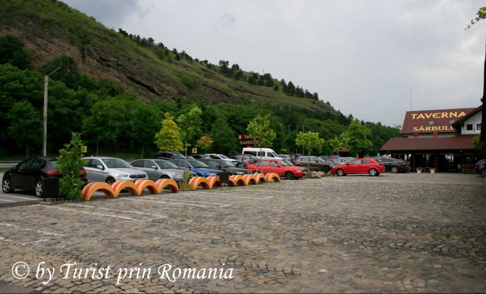 Parcarea restaurantului este spațioasă și oferă posibilitatea încărcării mașinilor electrice având două stații de alimentare. De la intrare, am fost impresionată de spațiul generos al restaurantului Taverna Sârbului.