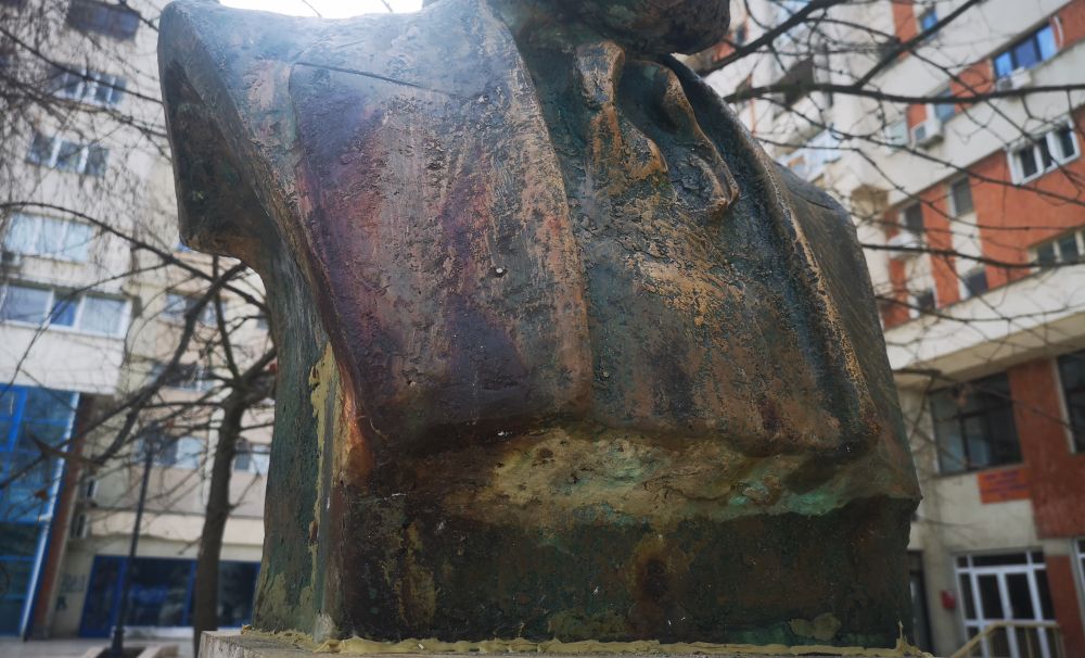 În graba de a scăpa de privirile trecătorilor, muncitorii au găurit busturile și le-au prins de socluri cu șuruburi de altă culoare decât cea a monumentelor!