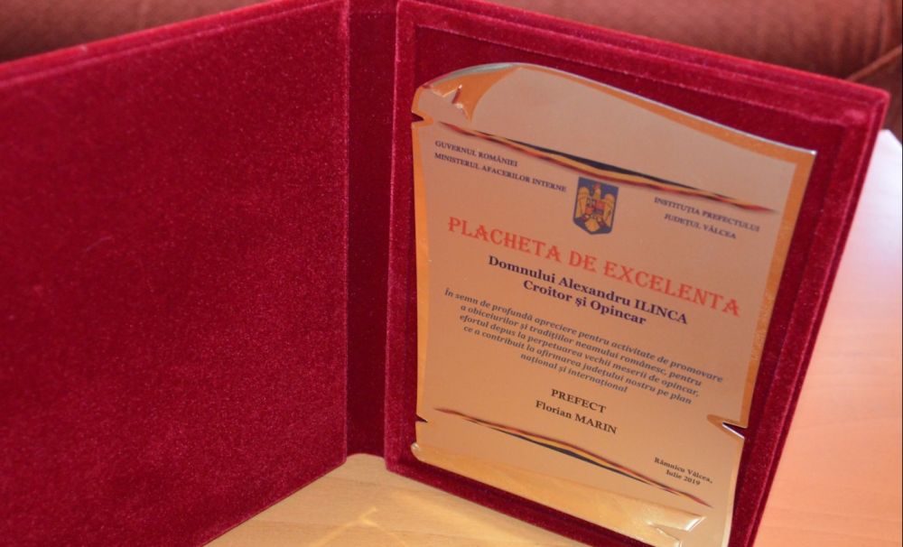Maestrul opincar Alexandru Ilinca a primit de prefectul Florian Marin o plachetă de excelenţă. Prin acest gest i se recunosc meritele acestui meşter popular care duce mai departe tradiţiile străbune. Alexandru Ilinca este unul dintre cei mai apreciaţi meşteşugari din România, ultimul opincar al Olteniei.