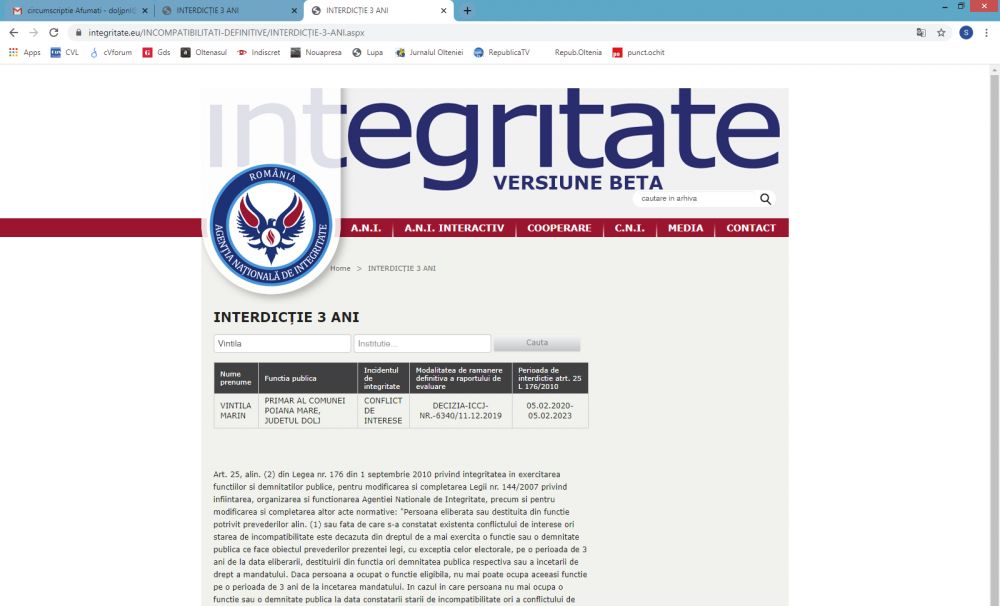 6. Vintilă Marin – fost primar al comunei Poiana Mare, aflat în conflict de interese, potrivit Deciziei ICCJ 6340/11.12.2019.