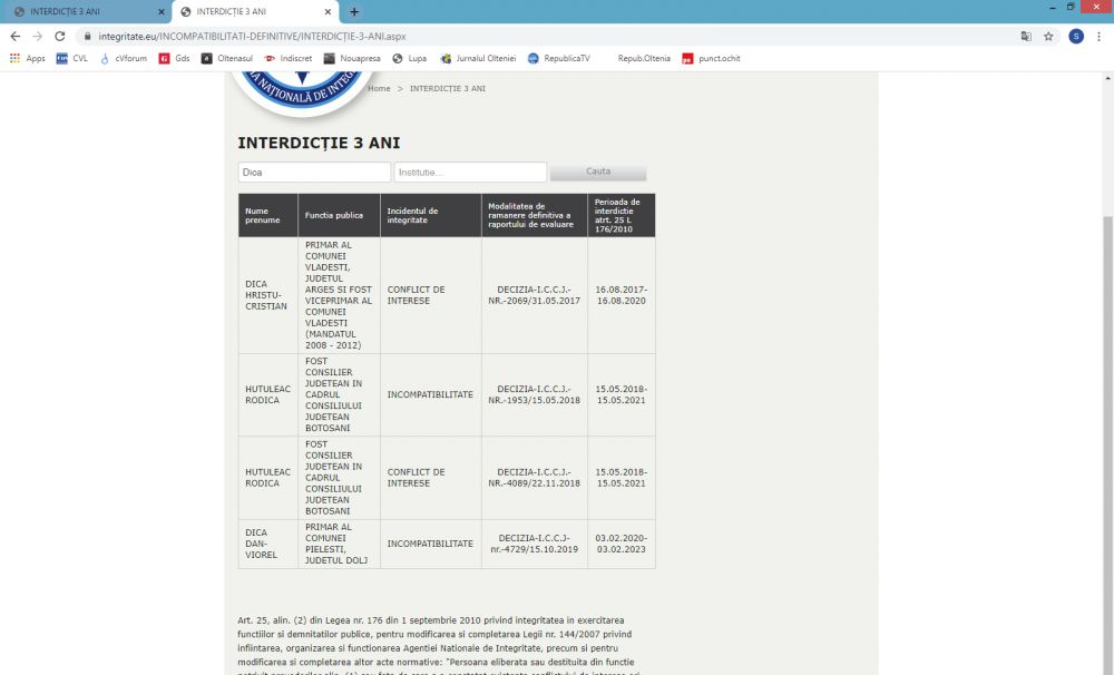 2. Dică Dan Viorel – fost primar al comunei Pielești, incompatibil, potrivit deciziei ICCJ 4729/15.10.2019